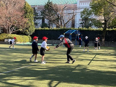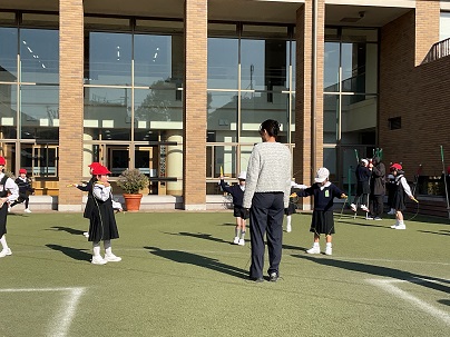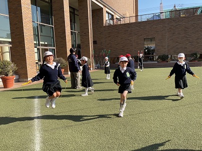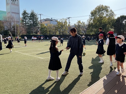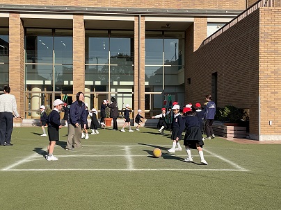 一日の学習を終え、下校前に放課後遊びをする子どもたち。みな素敵な笑顔です。太陽が西に傾いてきていましたが、朝のような寒さもなく、先生たちも楽しそうに遊んでいました。
