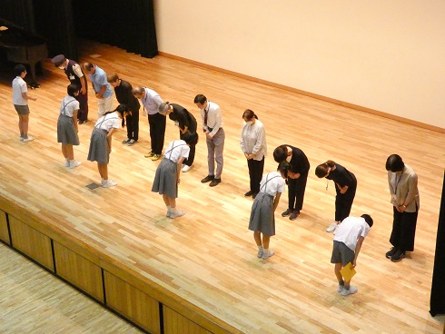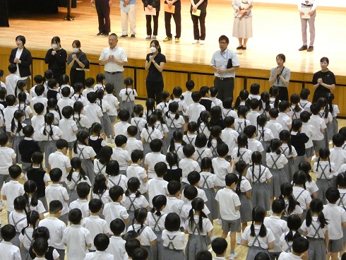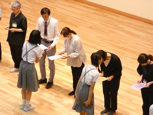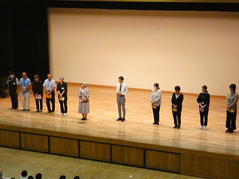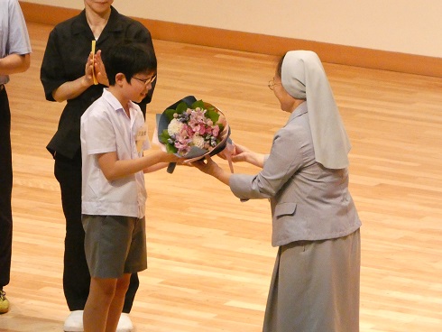 この日は、感謝の一日でした。朝礼後の時間には、事務職員、警備員、清掃やお昼のお茶を用意してくださる方々など、縁の下の力持ちの皆さんに、子ども達からの感謝の言葉や花束、歌がプレゼントされました。そして、一緒にお祈りを捧げました。和やかなひとときでした。
