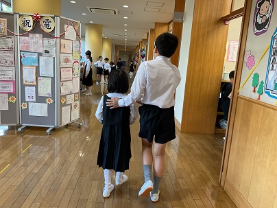 入学して間もない1年生のお世話を6年生が張り切って行っています。