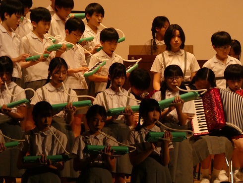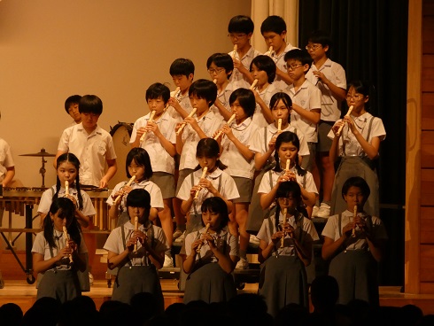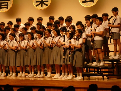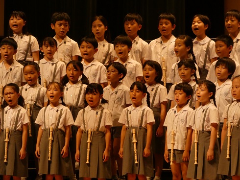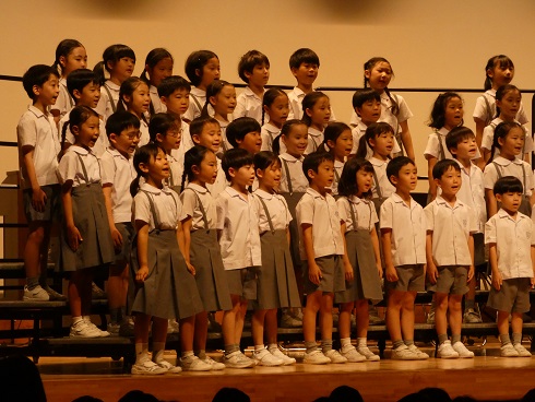 聖歌隊やジュニア・オーケストラクラブの演奏のあと、各学年の発表がありました。前期前半から練習に励んできた子ども達は、堂々と、そして、一生懸命に練習の成果を発表していました。発表後の子ども達からは達成感溢れる輝く笑顔がこぼれていました!
