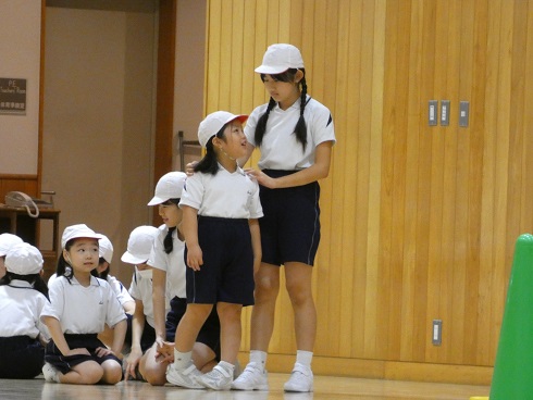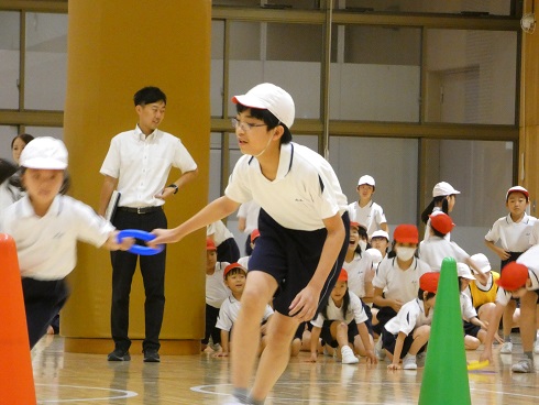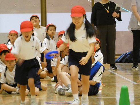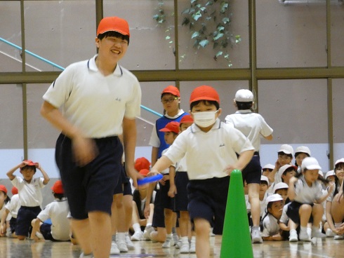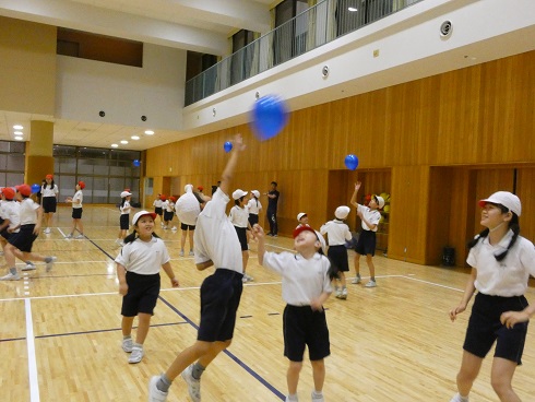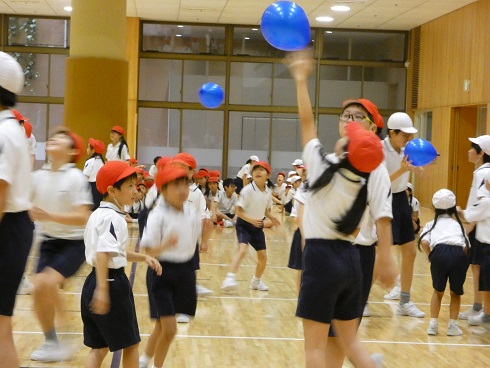 今日は、1年生と6年生の交流会が行われ、体育館で輪っかリレーや風船バレーを一緒にし、楽しい時間を過ごしました。
