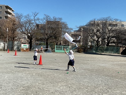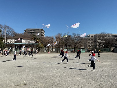 今日は、目黒サレジオ幼稚園のグラウンドをお借りして、凧揚げ大会をしました。