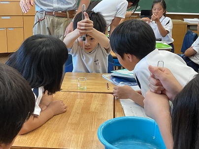 まずは予想し、そのあとは班のみんなで協力しながらの実験です。