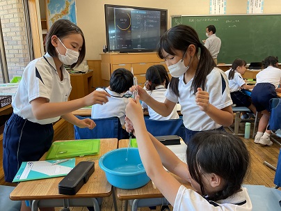 4年生のクラスでは、空気を温めると何が起こるのか、実験していました。