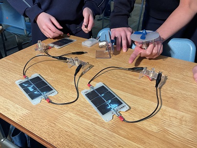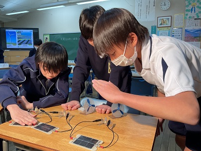 実験を進めるうちに発電の方法が分かり、音楽を流すことができたり、豆電球をつけることができたり、最後にはプロペラを回すこともできました。皆、協力しながら楽しそうに実験に取り組んでいました。