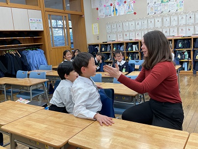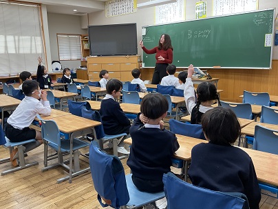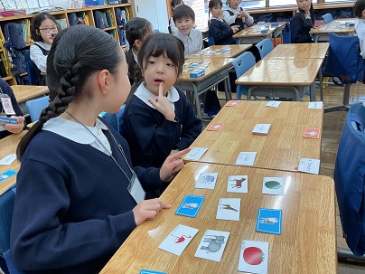 1年生も2年生も先生の話をしっかりと聞きながら、学習を進めることができました。先生の話がよく分からなくても諦めないことが大事です。低学年のうちからネイティヴの先生の英語を耳にすることで、だんだんと理解できるようになります!