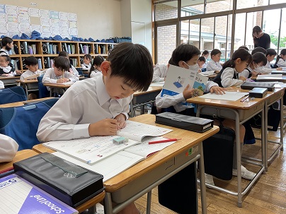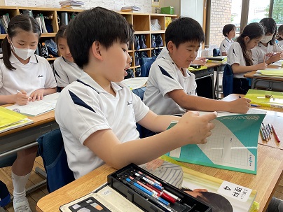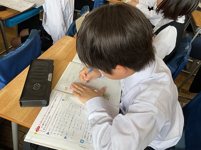 3年生クラスでは、算数や英語をそれぞれ真剣に学んでいました。